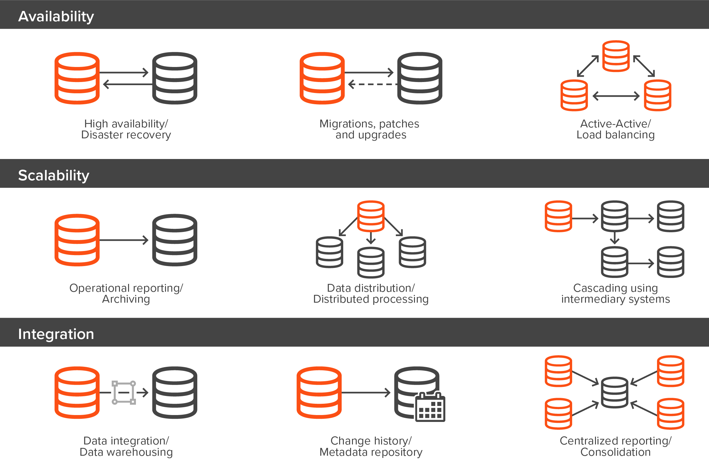 É possÃvel garantir a alta disponibilidade com facilidade, migrar dados sem nenhum risco organizacional e integrar dados em tempo quase real para criar relatórios e obter informações úteis.